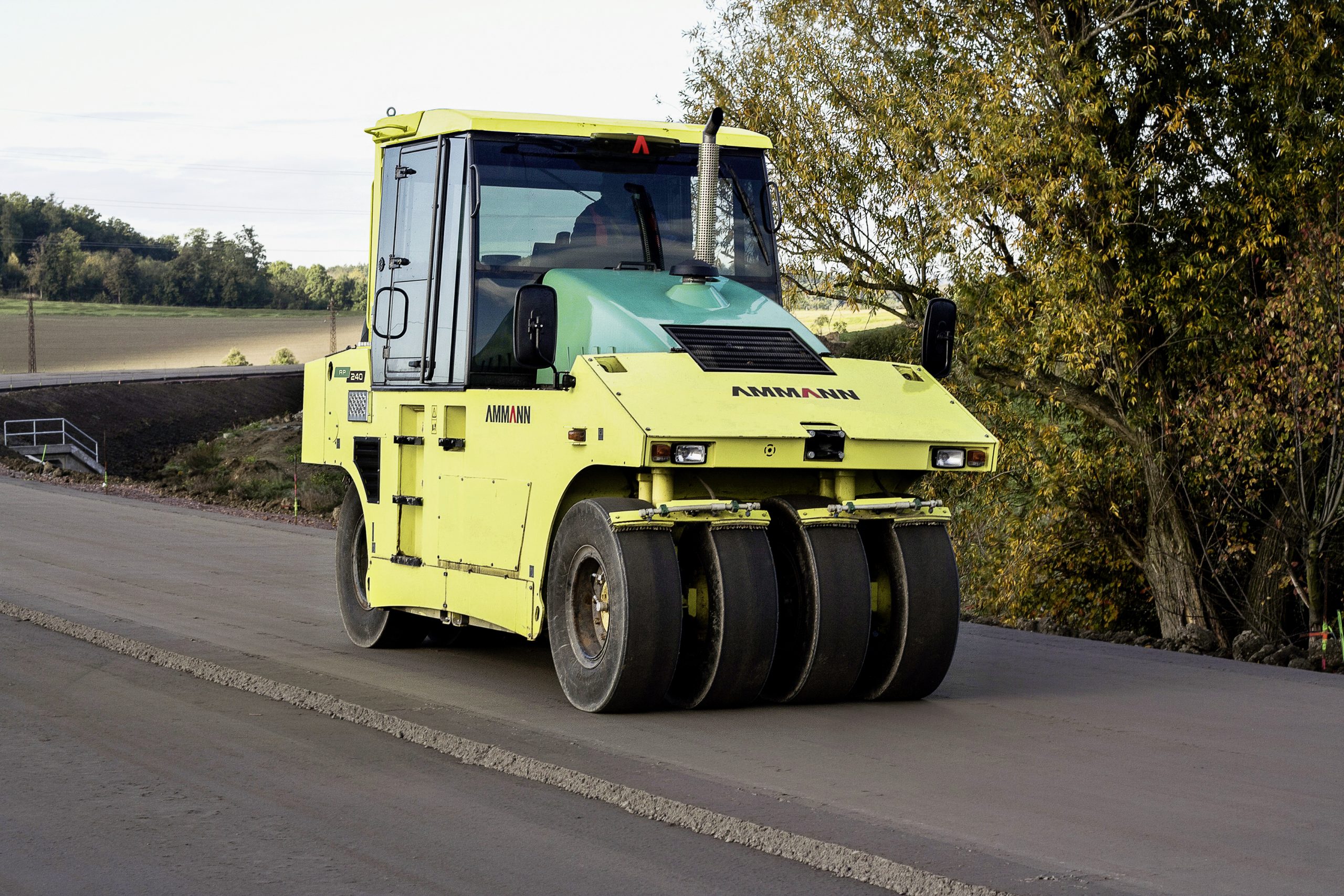 “The Ammann AP 240 Pneumatic Tyred Roller offers unmatched flexibility with its adjustable ballasting system and Air-on-run tyre pressure control, making it ideal for various construction applications.